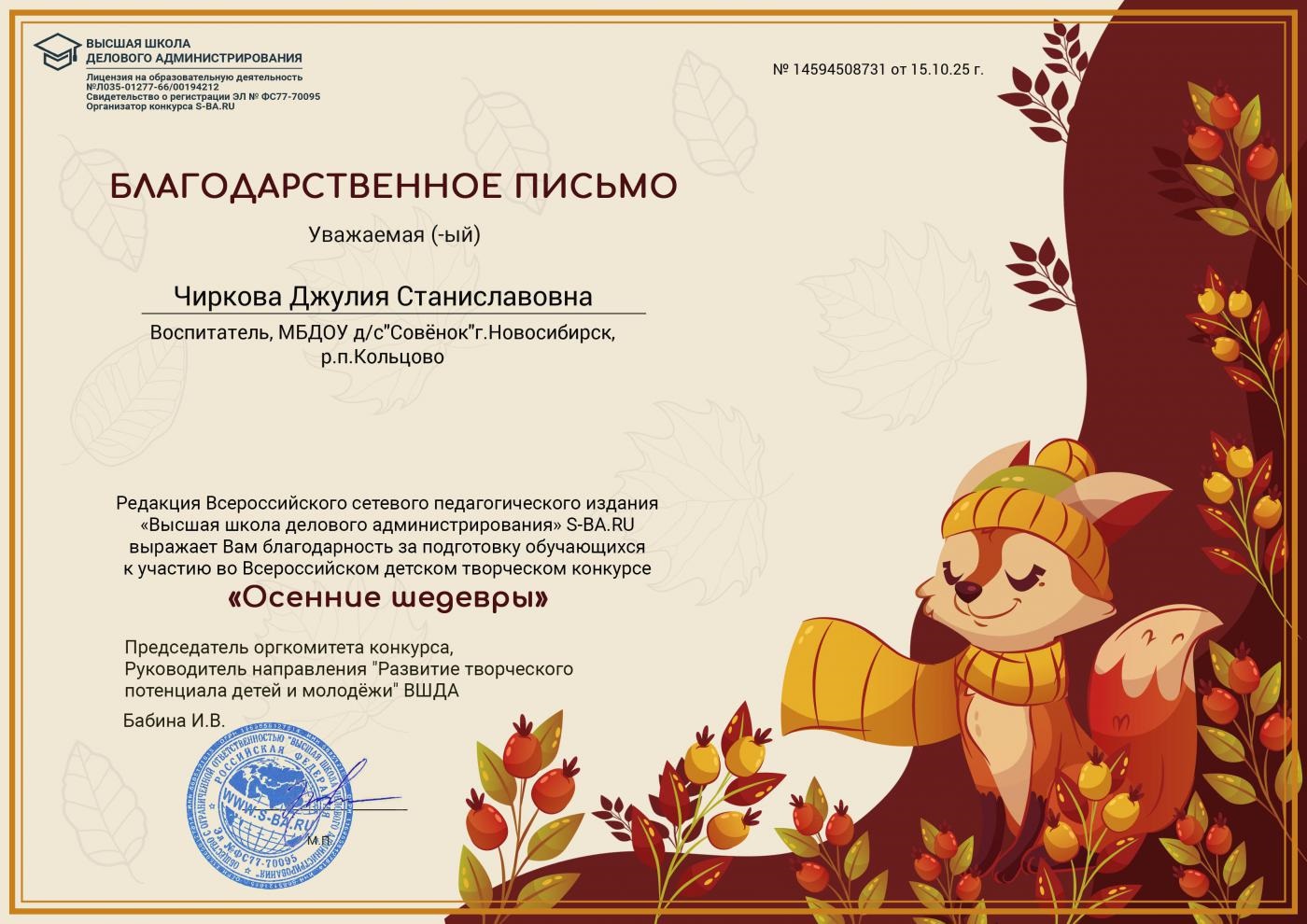 благодарственное письмо осенние шедевры